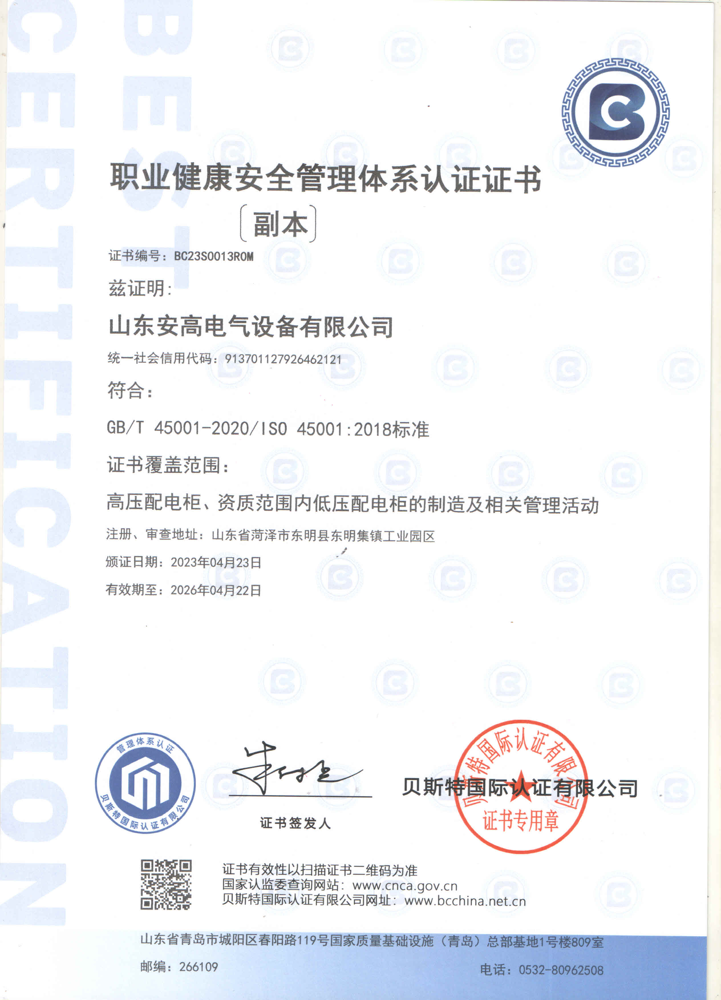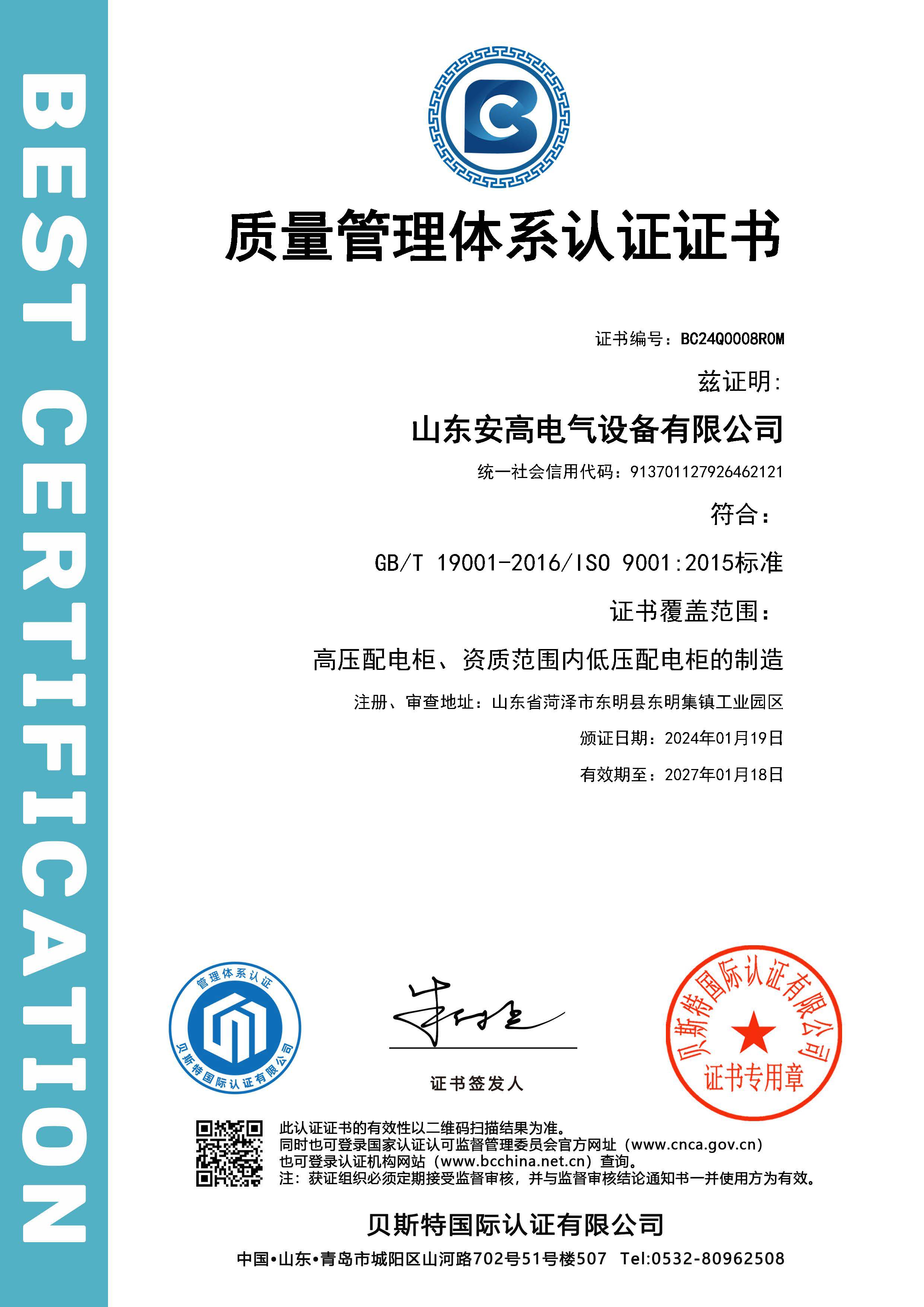 安高經過了多年磨練,先后榮獲“守合同重信用企業”、“專精特新”中小企業、“質量、服務、信譽AAA企業”、“國家合格評定質量信得過產品”、“山東省高新技術企事業”等多項榮譽稱號。